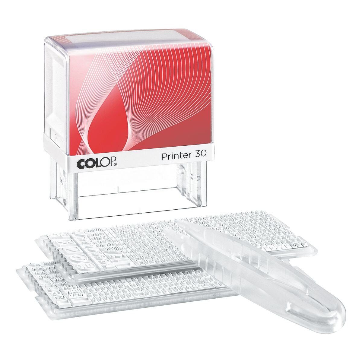 COLOP Stempel Printer 30/2 Setselbstfärbend mit Textplatte zum Selbersetzen, transparenter Kunststoff