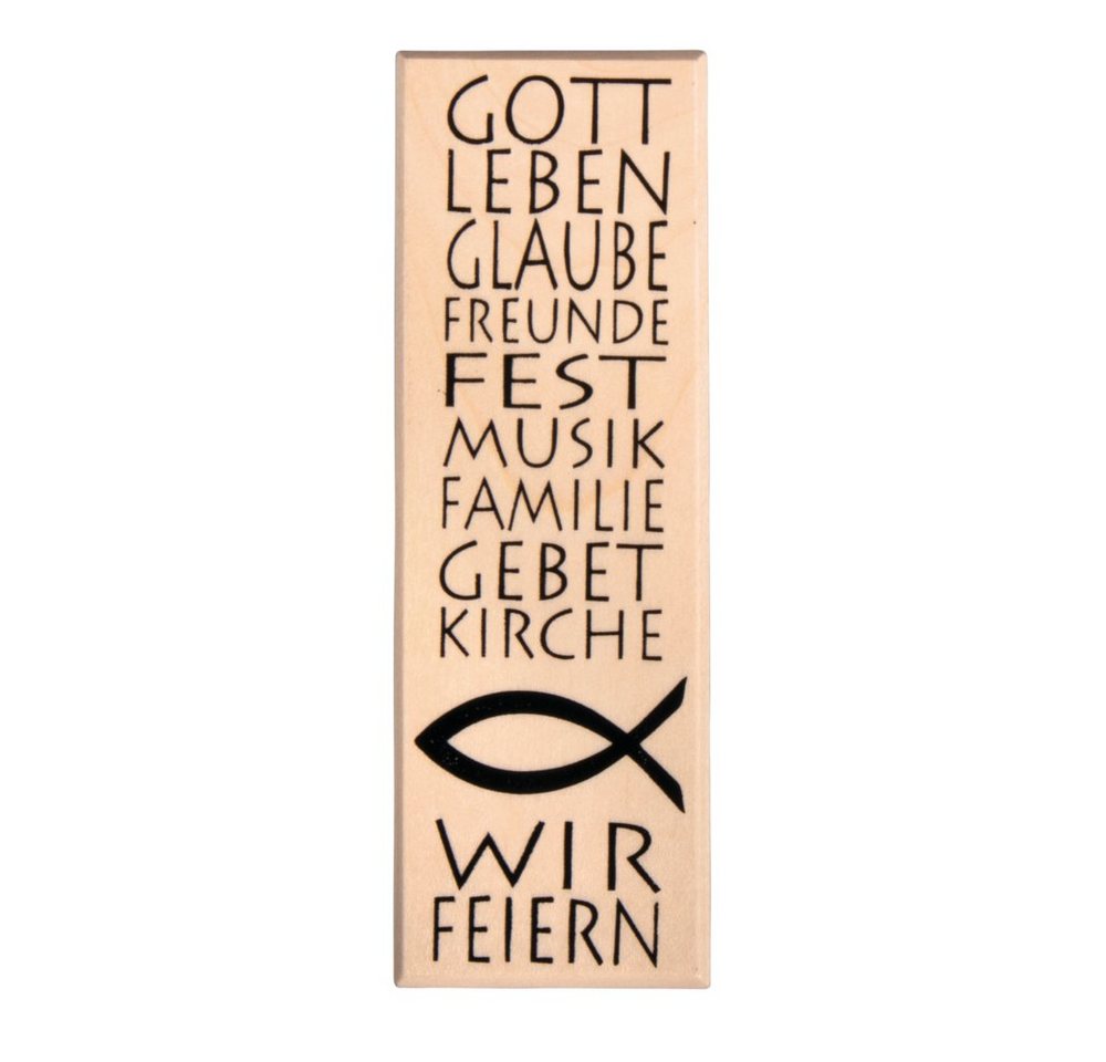 • Dieser Stempel aus Holz mit dem Motiv "Christliche Einladung" hat die Maße 4x12cm
