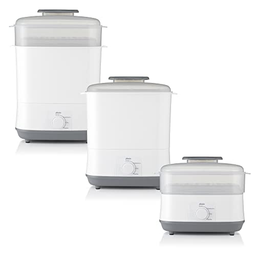 • Der Sterilisator bietet Platz für bis zu 11 Babyfläschchen und Zubehör, auch große 330ml Fläschchen können sterilisiert werden