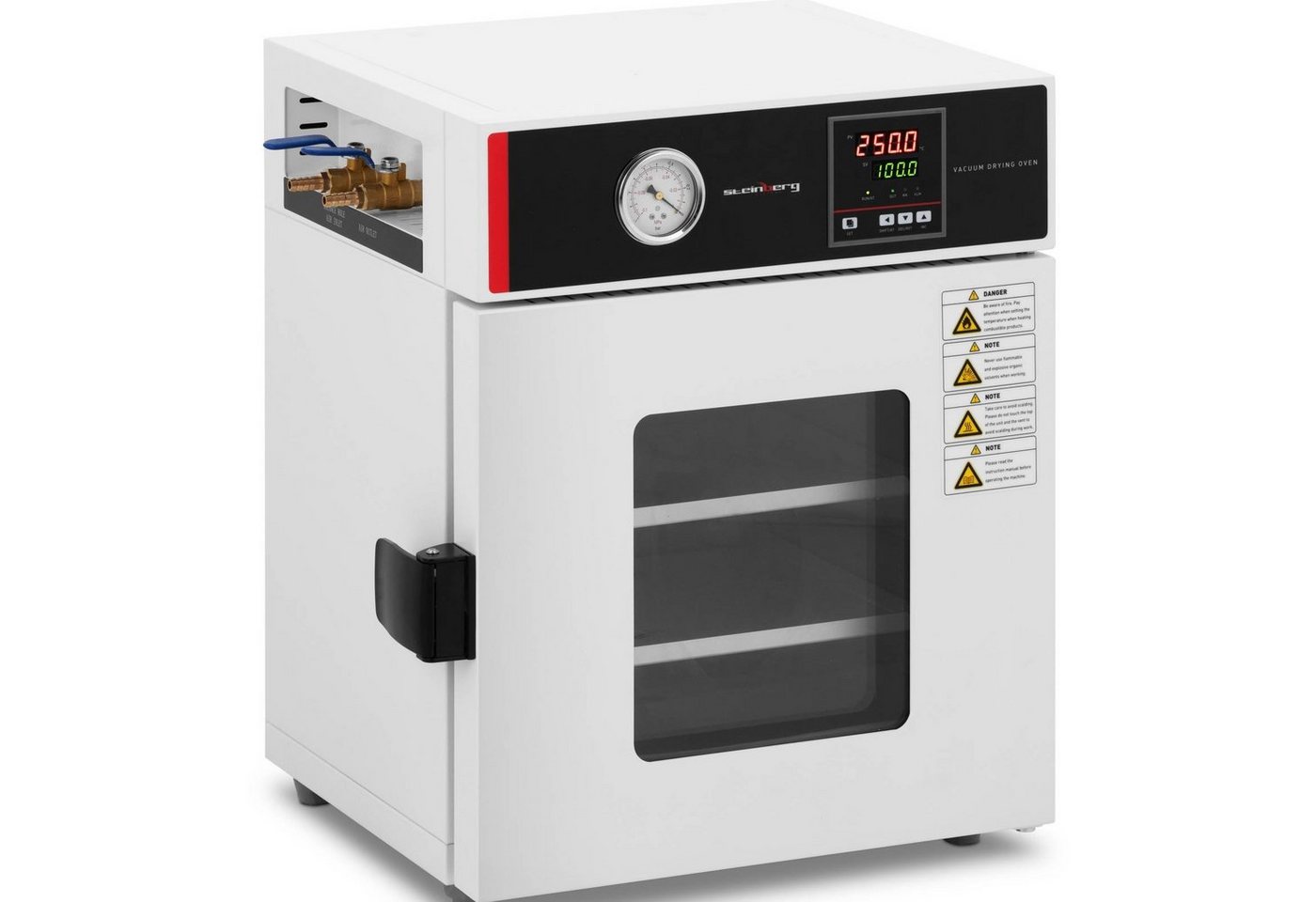 • Der Vakuumtrockenschrank von Steinberg Systems mit einer Leistung von 800 W und einem Fassungsvermögen von 25 Litern ist ideal für naturwissenschaftliche, biochemische und medizinische Labore