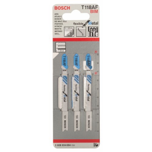 Das Stichsägeblatt T 118 AF eignet sich hervorragend zum Schneiden von dünneren Metallen, wie Aluminium oder Kupferblech, sowie Holz und Kunststoff. Es ist ideal für Heimwerker geeignet, die gelegentlich kleinere Sägearbeiten durchführen möchten.