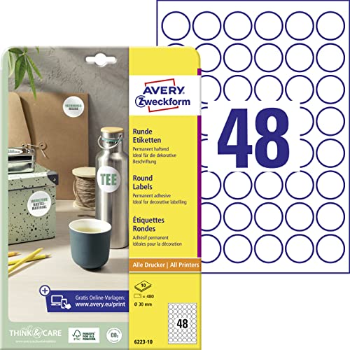 Die AVERY Zweckform 6223-10 runden Etiketten sind vielseitig einsetzbar, bieten eine gute Haftung und sind einfach zu gestalten. Sie sind ideal für kleine Produktetiketten und kreative Projekte, wobei die Verwendung eines Laserdruckers empfohlen wird. Die Größe und Qualität der Etiketten werden von den Nutzern positiv hervorgehoben.