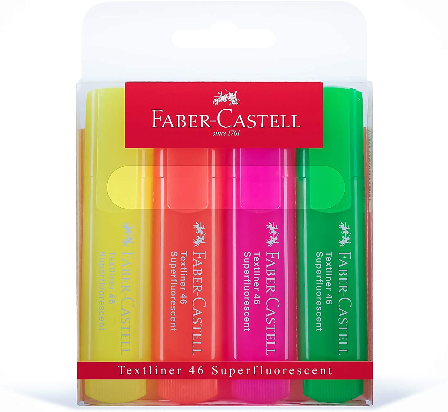 Das Faber-Castell Textmarker TL 46 Superfluor 4er Set bietet eine Auswahl an leuchtenden Farben zu einem guten Preis-Leistungs-Verhältnis. Die Marker können nachgefüllt werden und bieten somit eine umweltfreundliche Option für den täglichen Gebrauch.