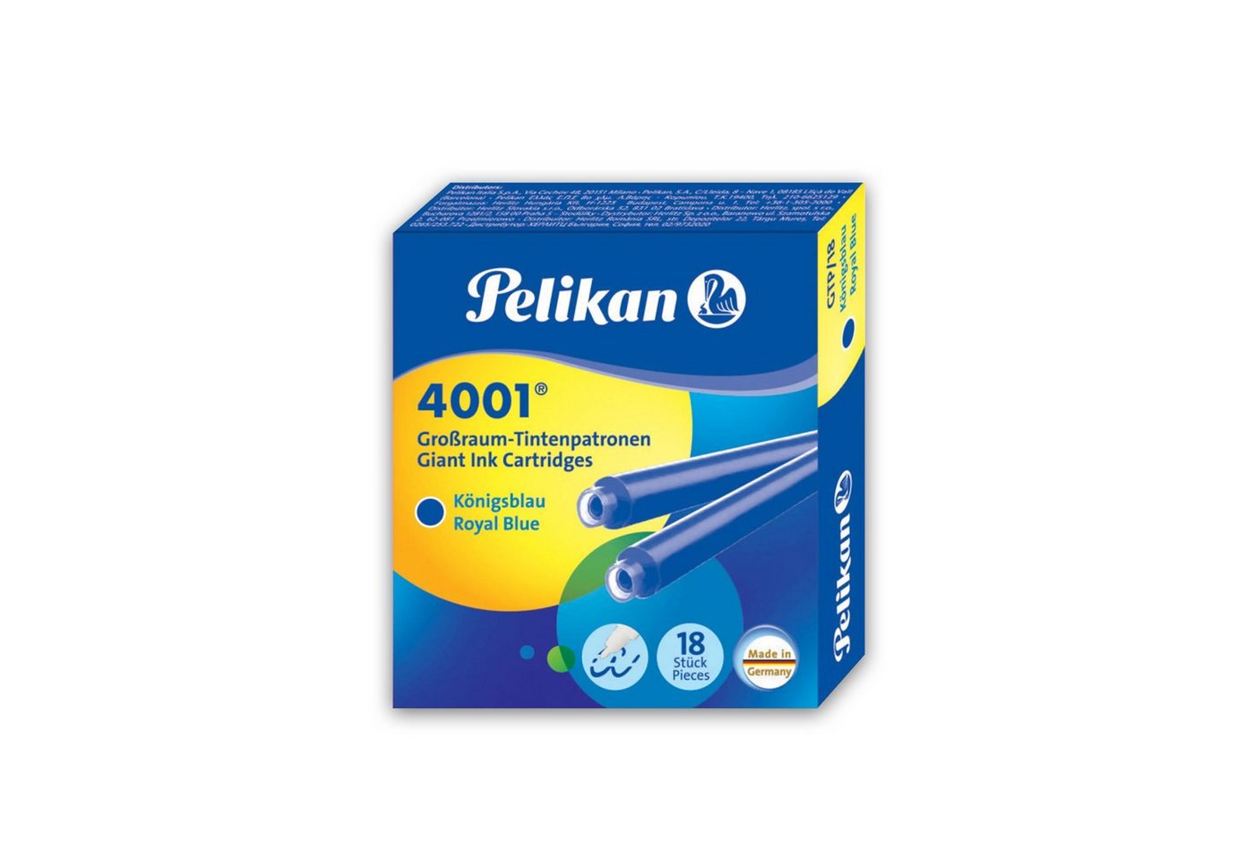 • Pelikan Großraum-Tintenpatronen 4001 GTP/18 in königsblau sind Standard-Großraumpatronen, die in den meisten Patronen-Füllhaltern verwendet werden können