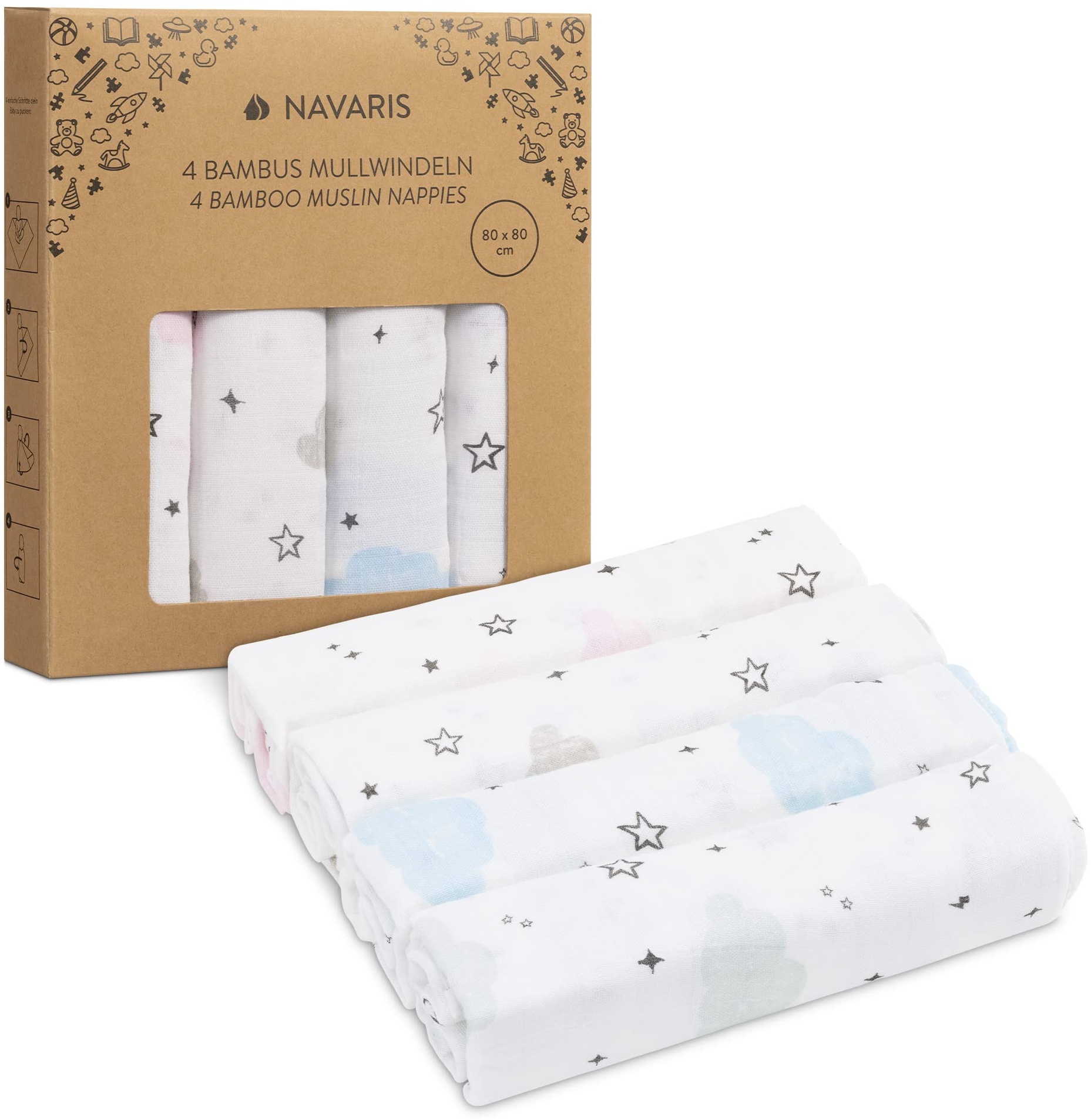 | Name | Navaris Bambus Baby Mullwindel Set - 4x Mulltuch zum Stillen Pucken Wickeln - 80x80cm Pucktuch Spucktuch Stilltuch umweltfreundlich - weiß blau |