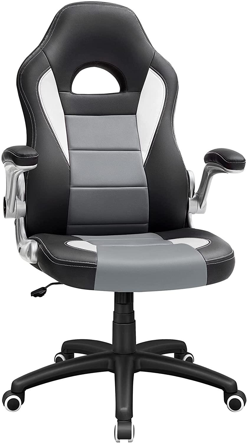 | Name | Songmics Gamingstuhl, Racing Chair, Schreibtischstuhl mit hoher Rückenlehne, Bürostuhl, höhenverstellbar, hochklappbare Armlehnen, Wippfunktion, für Gamer, schwarz-grau-weiß OBG28G |