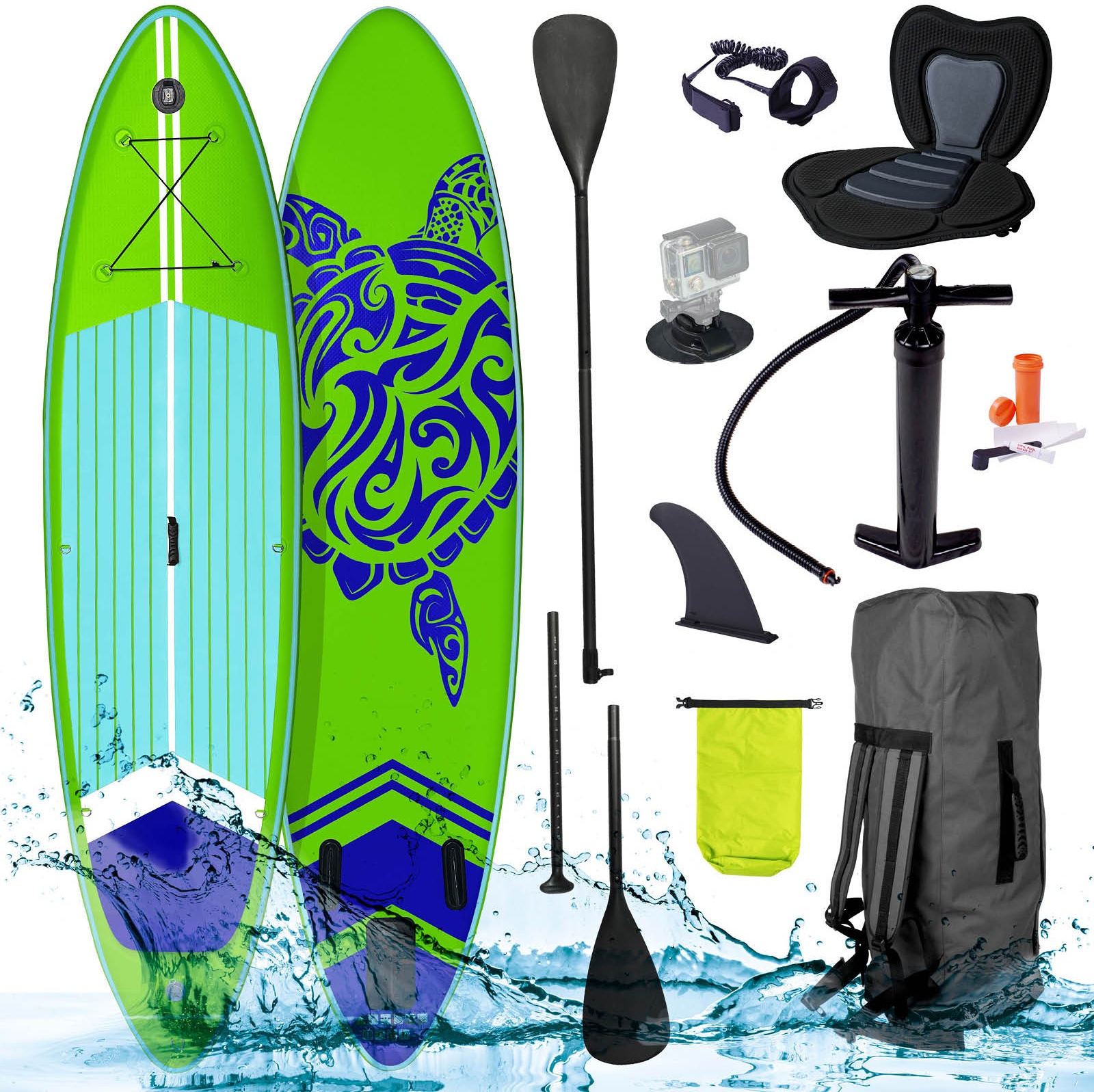 | Name | BRAST SUP Board SUPER Set Aufblasbares Stand up Paddle mit extra Zubehör 320x81x15cm Grün incl. Kajaksitz Kamerahalterung Paddel Fußschleife Rucksack Pumpe |
