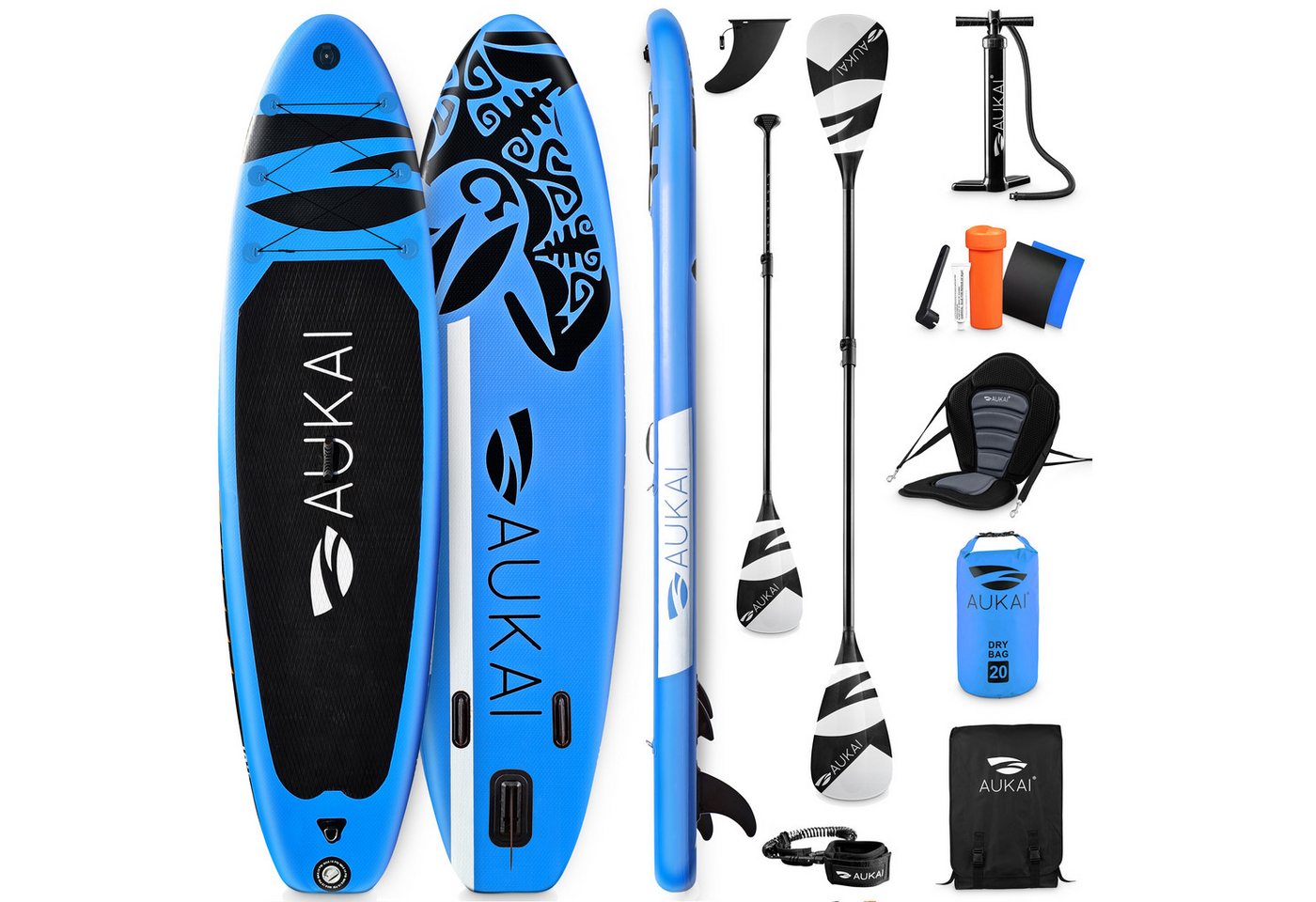 Aukai SUP-Board PRO 320cm2in1 Aufblasbares Stand up Paddle Set mit Kajak-Sitz, 15cm Stark, bis zu 200kg belastbar, Ocean Blue