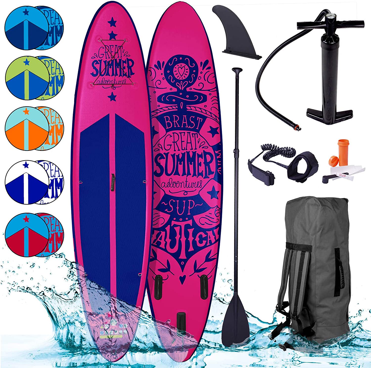 | Name | BRAST SUP Board Summer Aufblasbares Stand up Paddle Set 320x81x15cm Pink inkl. 2in1 Paddel Kajak-Sitz Action-Cam-Halterung Fußschlaufe Pumpe Rucksack |