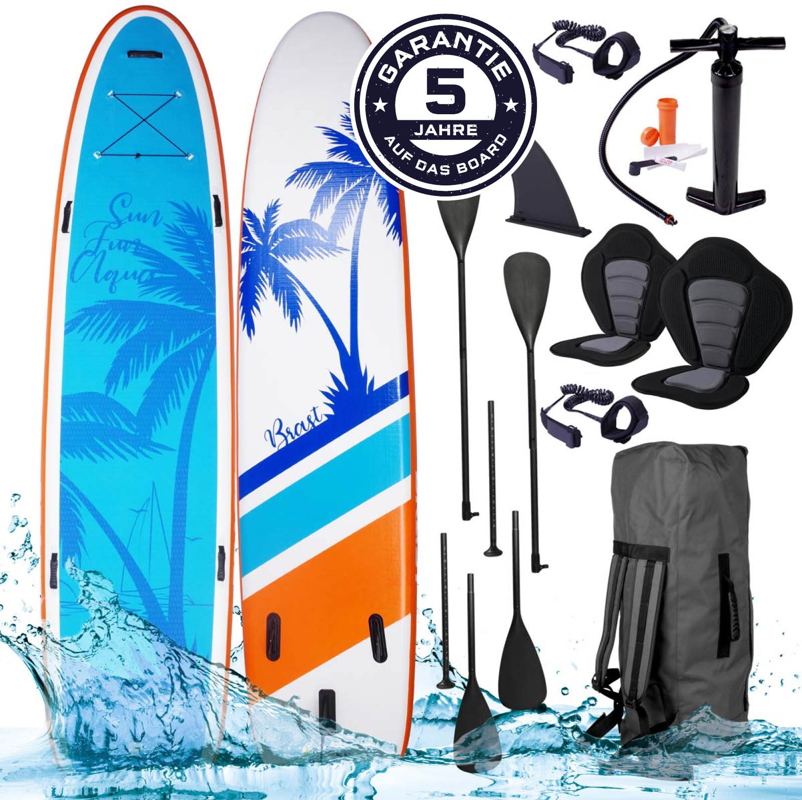 | Name | BRAST SUP Board Hawaii Aufblasbares Stand up Paddle Set XXL 370x87x15cm bis 210kg incl. Zubehör 5 Jahre Garantie 2X Kajak-Sitz 2X Fußschlaufe 2X Paddel Pumpe Rucksack |