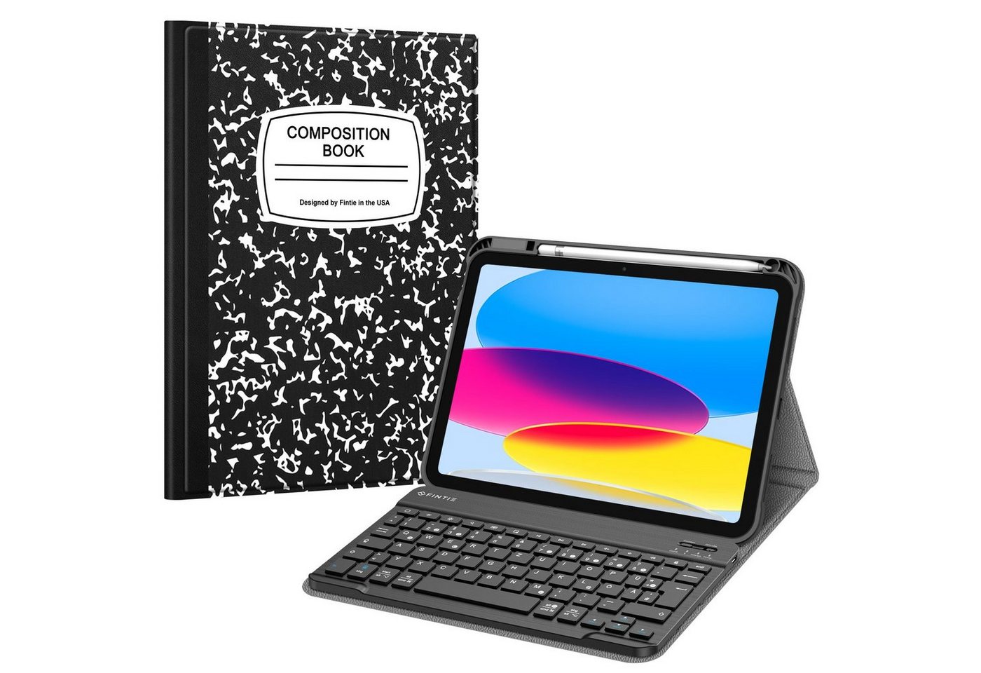 Fintie Tablet-Hülle für iPad 11. Generation 11" 2025(A16) & iPad 10. Generation 2022 10.9", mit Pencil Halter, magnetisch Abnehmbarer Tastatur (QWERTZ Layout) - Schwarz