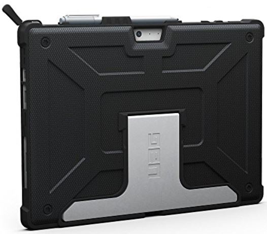 Die Urban Armor Gear Metropolis Schutzhülle ist eine zertifizierte Hülle für das Microsoft Surface Pro 7, 6, 5 und 4. Sie bietet einen ausgezeichneten Schutz und ist solide verarbeitet. Durch den Kickstand kann das Gerät in vier verschiedenen Winkeln aufgestellt werden und im Portrait-Modus genutzt werden. Besonders praktisch sind die Stifthalterung sowie der Zugang zu allen Anschlüssen des Geräts. Die Lüftungsschlitze sorgen außerdem für eine gute Belüftung des Surface Pros.