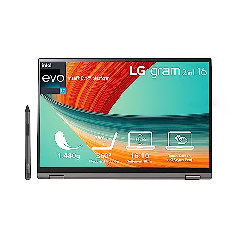 Kunden haben gemischte Meinungen zum LG gram 16T90R-G.AA78G 16 Zoll Ultralight 2-in-1 Convertible Notebook & Tablet. Einige bemängeln die langsame CPU, laute Lüfter, instabile Leistung und Softwareprobleme, während andere die gute Verarbeitung und Leistung loben.