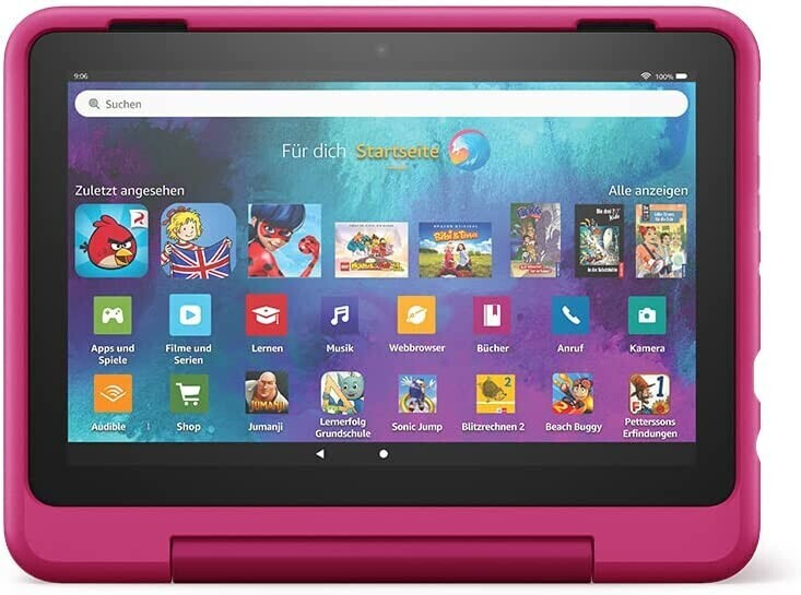 | Lieferumfang | Fire HD 8-Tablet, kindgerechte Hülle von Amazon, USB-C-Kabel (2.0), 5-W-Netzteil und Kurzanleitung |