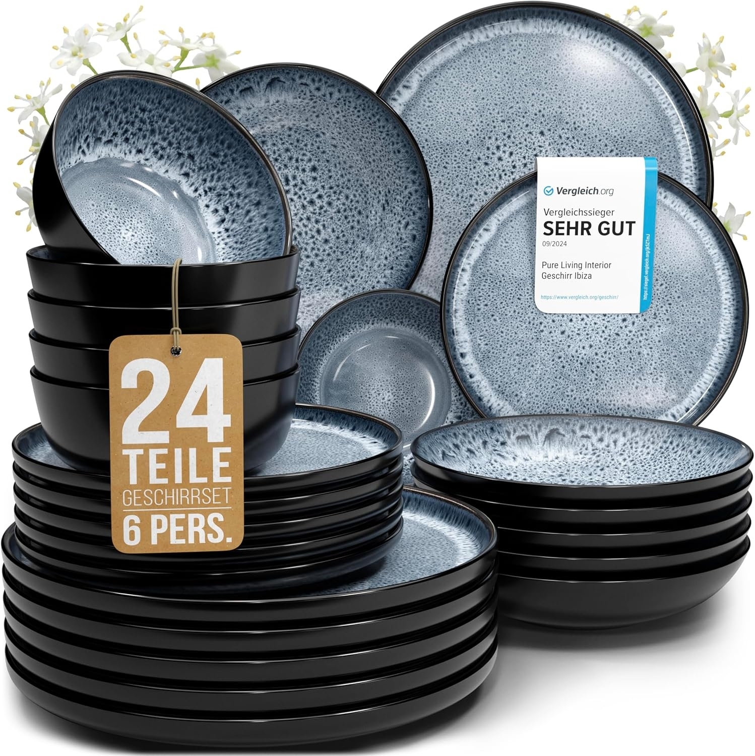 | Name | Steingut Geschirrset 6 Pers. Ibiza 24-tlg Hochwertiges Mediterranes TEST SEHR GUT Steingut Geschirr Set - Schüssel- und Teller Set - Tafelservice 6 Personen Geschirrsets Pure Living in Rauchblau |