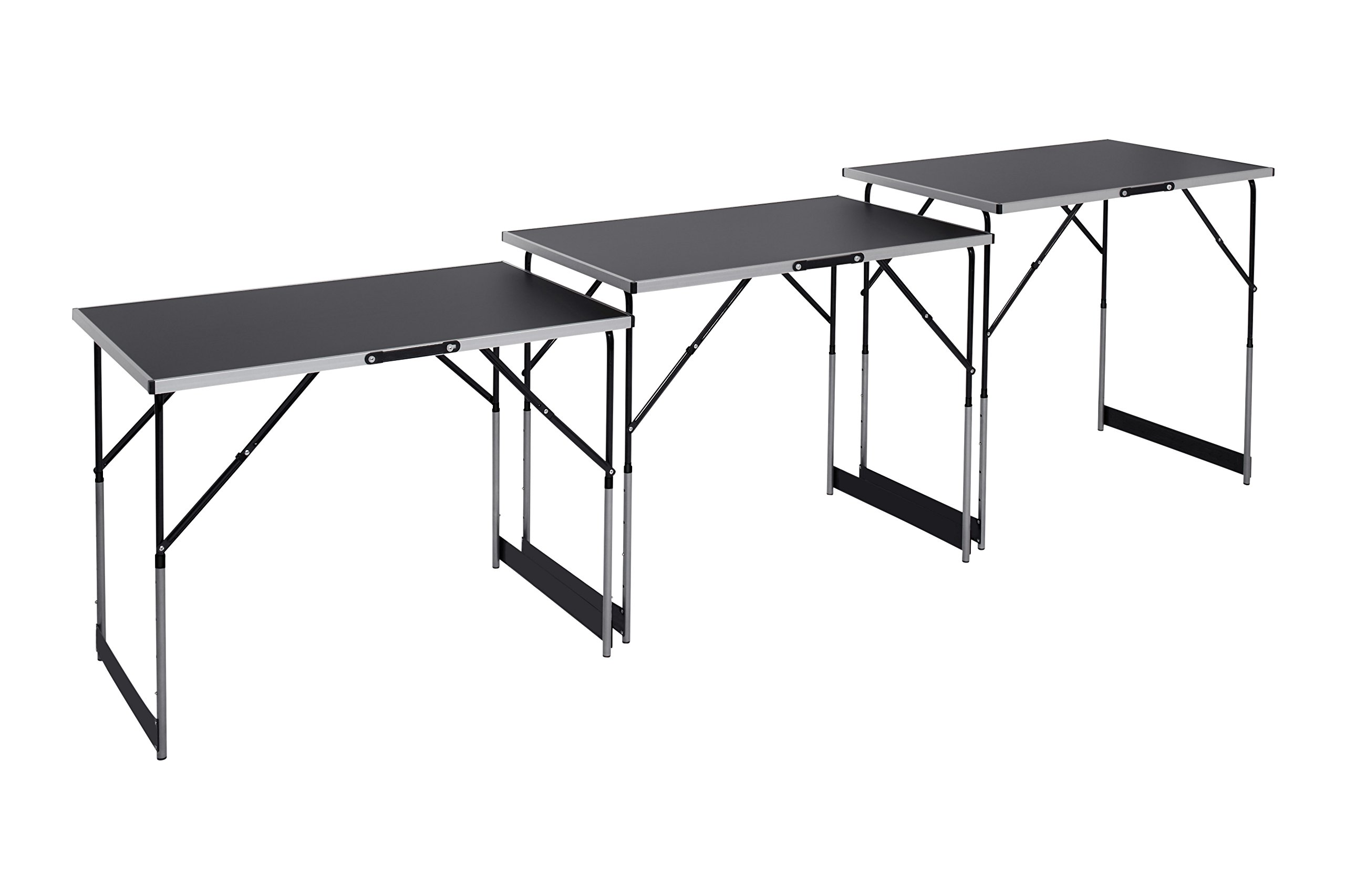 Dieses Set aus drei leichten, klappbaren Tischen bietet eine hohe Flexibilität und Anpassungsfähigkeit für verschiedene Anwendungen. Mit einer Tragkraft von bis zu 30 kg pro Tisch sind sie ideal für temporäre Lösungen in unterschiedlichen Situationen. Die vierfache Höhenverstellbarkeit ermöglicht es, die Tische auf die gewünschte Höhe einzustellen, was den Komfort erhöht und eine ergonomische Nutzung fördert.