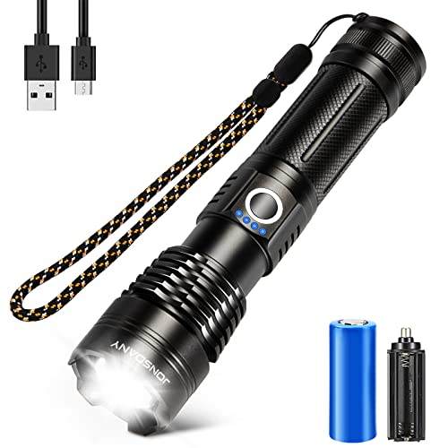 Die JONSDANY Taschenlampe LED Aufladbar mit 15000 Lumen bietet eine extrem hohe Helligkeit und Robustheit, was sie zu einem zuverlässigen Begleiter in verschiedenen Situationen macht. Dank der langen Akkudauer und der Möglichkeit, die Taschenlampe über USB aufzuladen sowie als Powerbank zu nutzen, ist sie besonders praktisch für unterwegs.