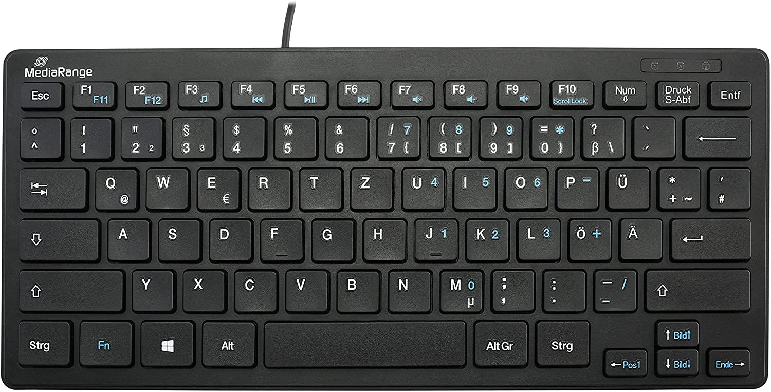 Die MediaRange MROS112 Tastatur ist eine günstigere Option mit stabiler Verarbeitung und internen Funktionen wie einem Nummernblock. Sie wird von den meisten Betriebssystemen erkannt und bietet eine gute Funktionalität für den Preis. Allerdings gibt es einige Mängel wie klappernde Tasten, schwergängige Anschläge und eine Bauweise, die nicht für den intensiven Gebrauch geeignet ist.