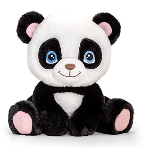 • Aus großen blauen, aufgestickten Bären Augen schaut der Plüschpanda aufgeregt in die Welt hinein