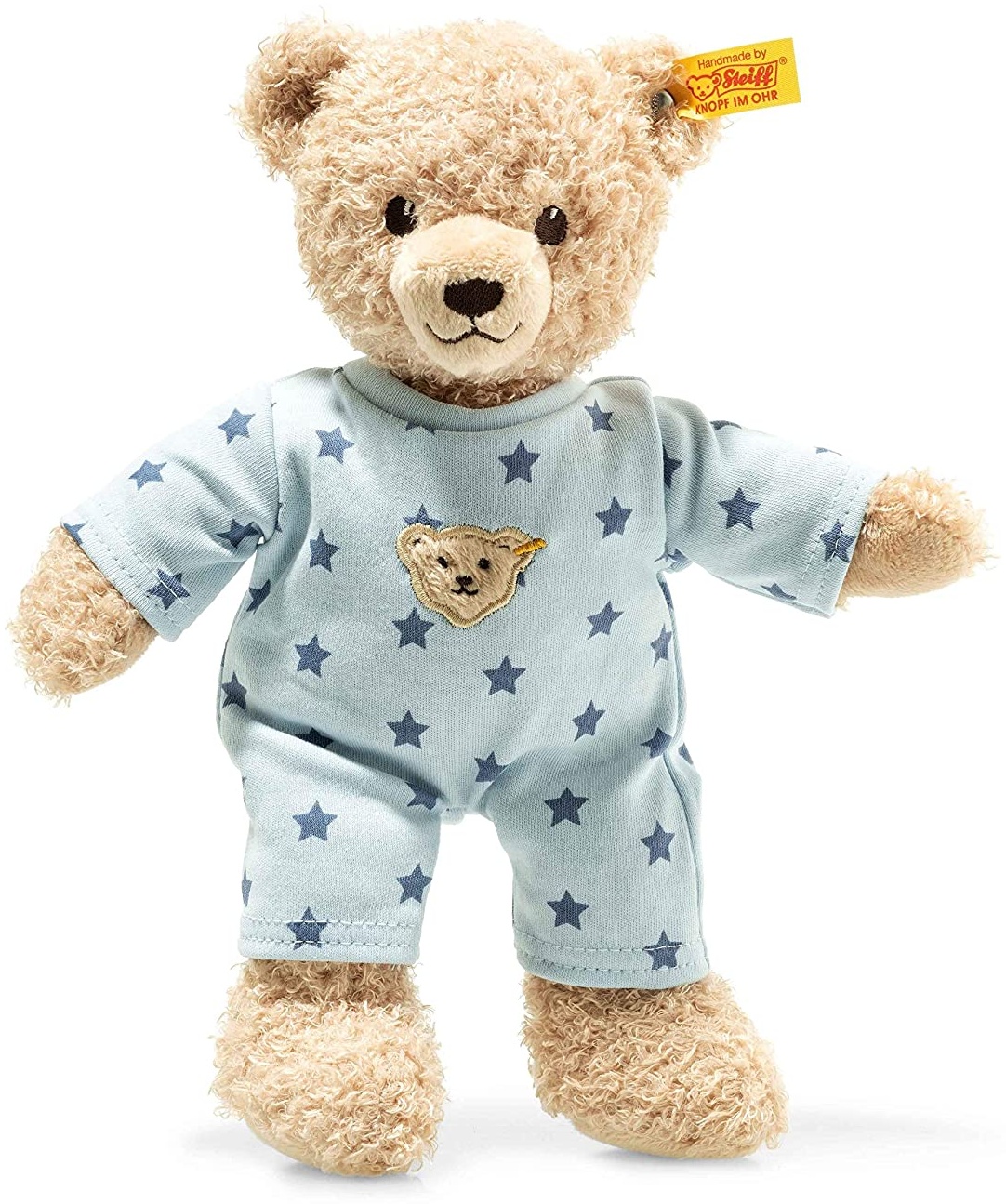 | Name | STEIFF Teddy and Me Teddybär Junge Baby mit Schlafanzug - 25 cm - Teddybär mit blauem Schlafanzug - Kuscheltier für Babys - weich & waschbar - beige/blau (241642) |