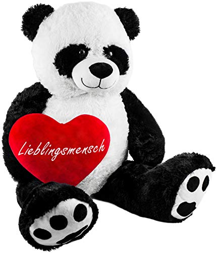 BRUBAKER XXL Panda 100 cm groß mit Lieblingsmensch Herz Stofftier Plüschtier Kuscheltier Teddybär