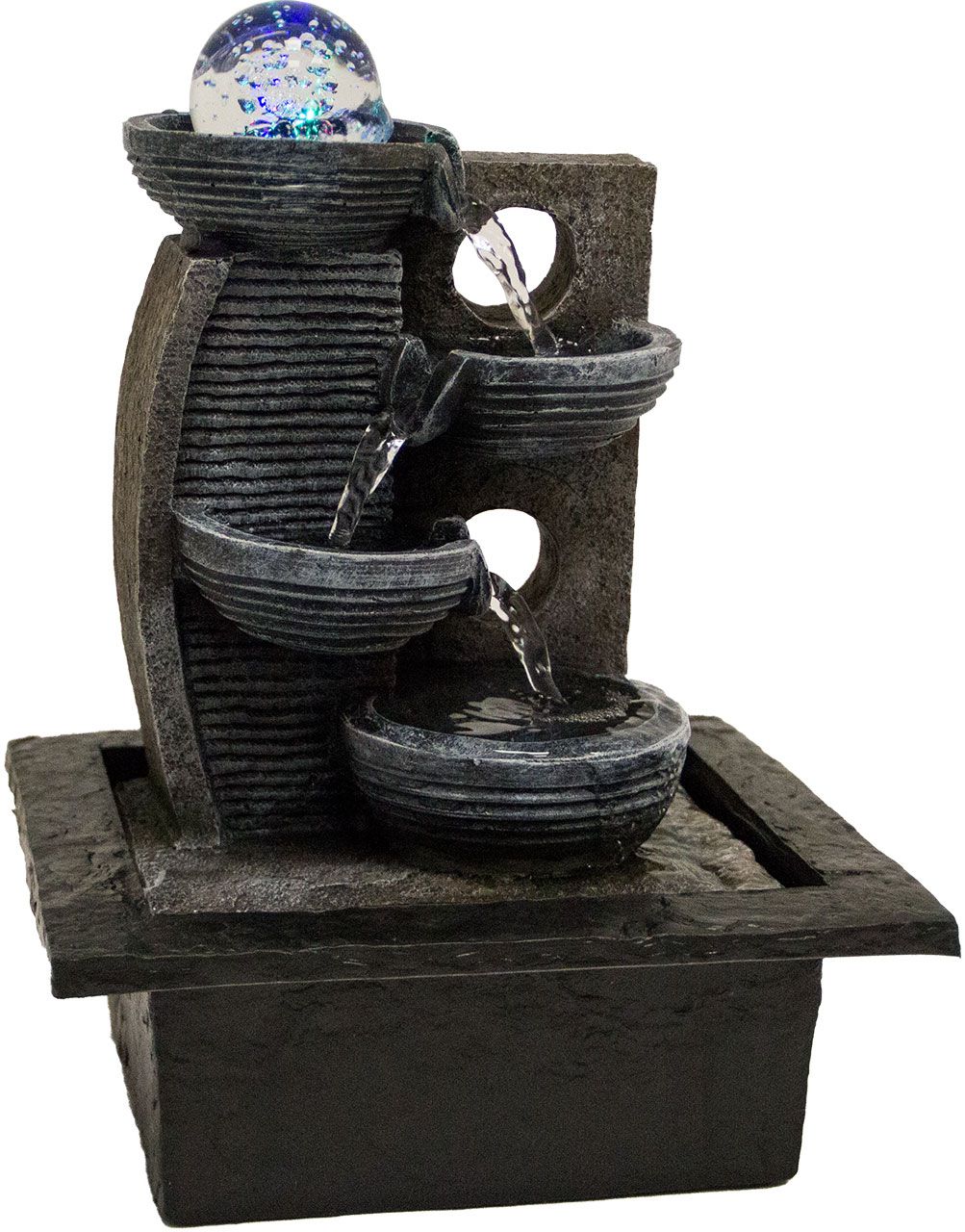 Der Zimmerbrunnen mit Kugel und LED bietet eine entspannende Atmosphäre durch sanftes Plätschern des Wassers und ein ansprechendes Farbenspiel der LEDs. Dies fördert nicht nur das Wohlbefinden, sondern kann auch zur Verbesserung der Luftqualität beitragen, indem die Luftfeuchtigkeit erhöht wird. Darüber hinaus sorgt das ästhetische Design für einen dekorativen Akzent in jedem Raum.