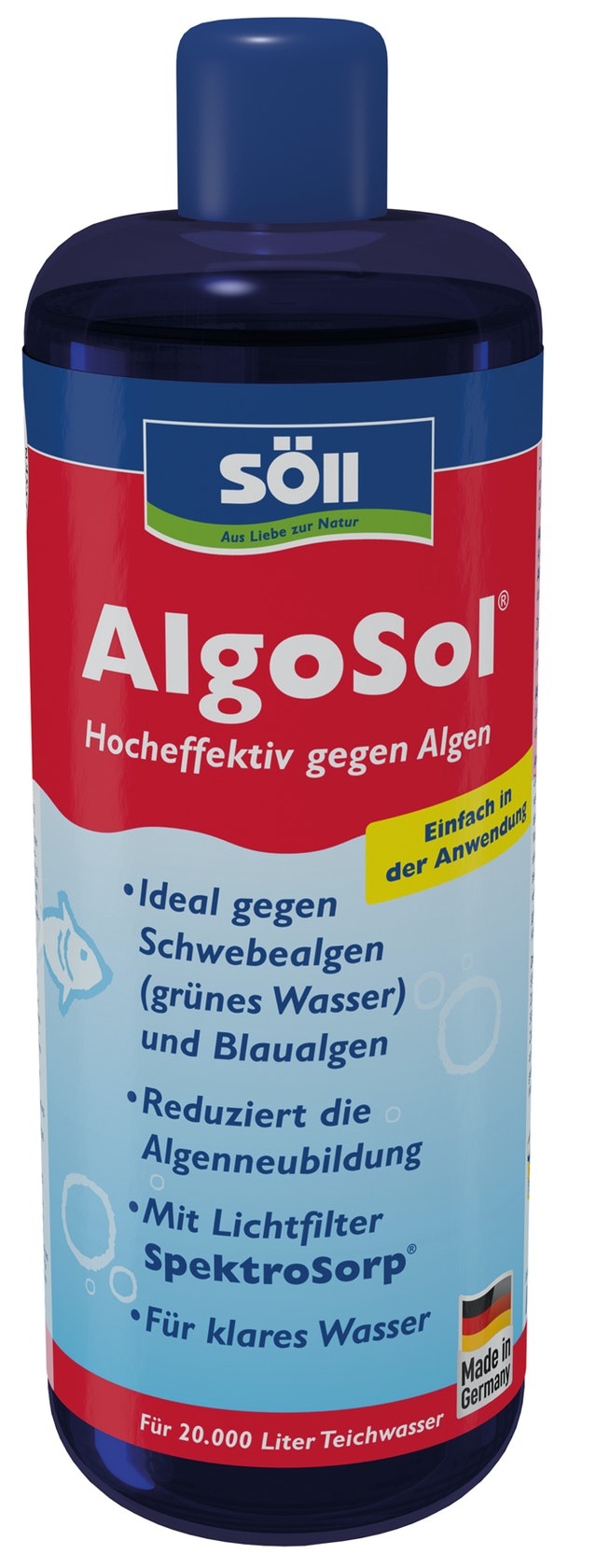 Der Söll Algenentferner Algosol zeigt in vielen Fällen eine gute Wirksamkeit gegen Algen und verbessert die Sicht im Teich, ohne den Fischen zu schaden. Allerdings berichten einige Nutzer von mangelndem Erfolg und empfinden das Produkt als teuer.
