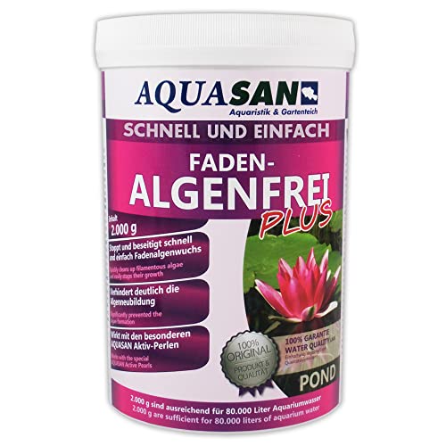 AQUASAN Gartenteich Faden-Algenfrei Plus (Beseitigt schnell und stoppt Fadenalgen im Teich. Der Fadenalgen-Entferner, Fadenalgen-Vernichter, Fadenalgen-Mittel), Inhalt:2 kg