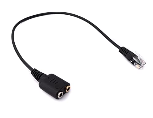 SYSTEM-S Telefon Headset Adapter 20cm RJ9 Stecker zu 2X 3.5 mm Klinke Audio Kabel Schwarz