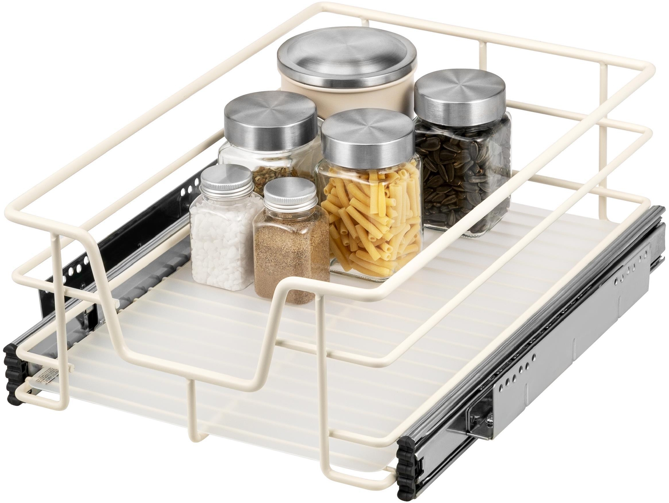 Name Teleskopschublade für 40 cm Schrank mit Einlegeboden, aus Metall, cremeweiß