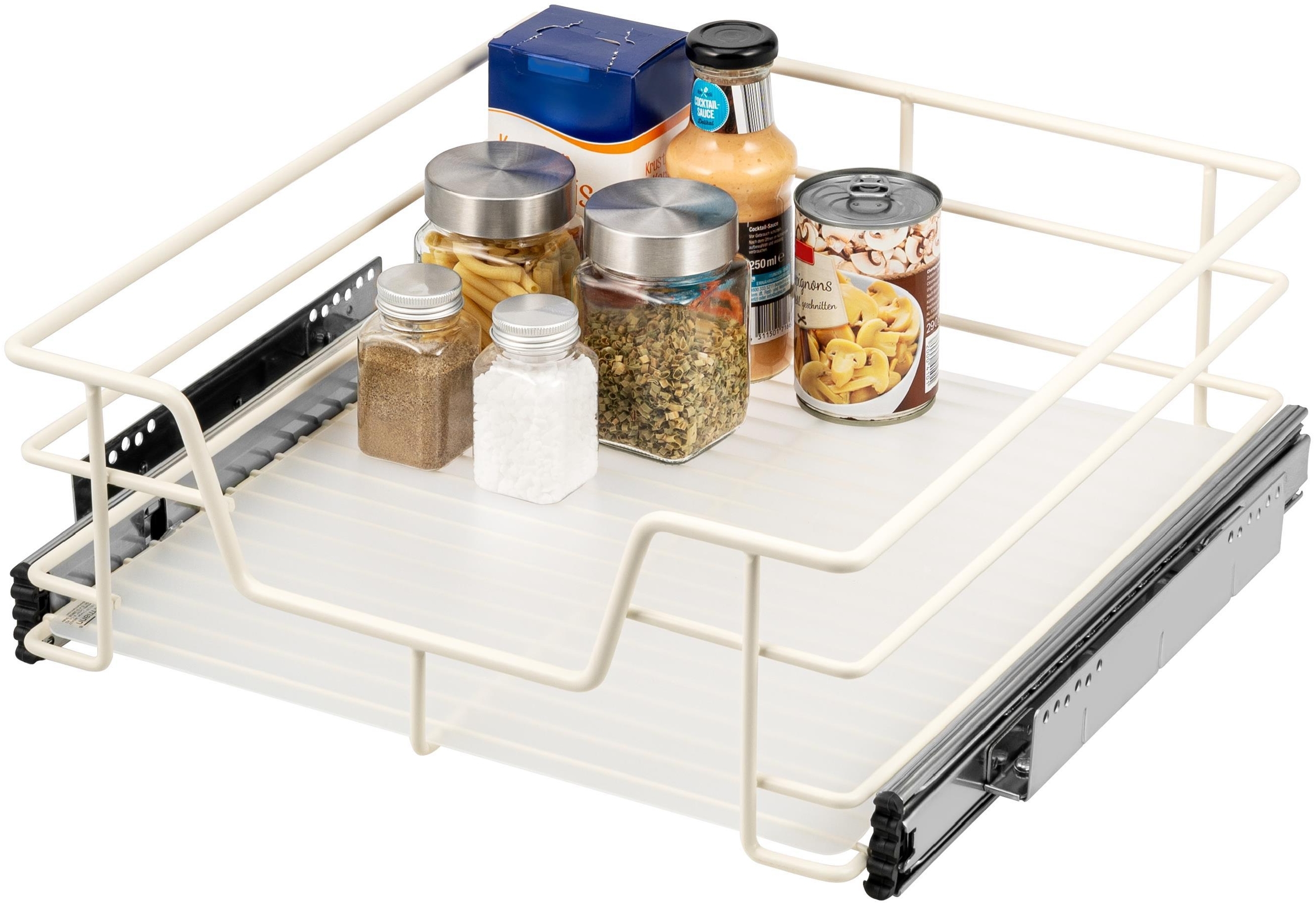 | Name | Teleskopschublade für 45 cm Schrank mit Einlegeboden, aus Metall, cremeweiß |