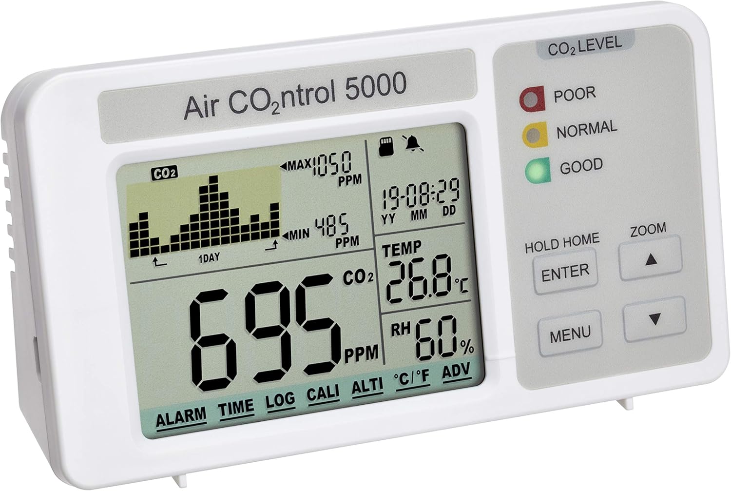 Das Kohlendioxid-Messgerät bietet eine einfache Bedienbarkeit und ermöglicht es, die CO2-Konzentration in der Luft zuverlässig zu messen. Mit einem integrierten Datenprotokoll können die Messwerte für weitere Auswertungen gespeichert werden. Zudem reagiert das Gerät schnell auf Veränderungen in der CO2-Konzentration und zeigt diese deutlich an, auch mit akustischer Meldung bei kritischen Werten.