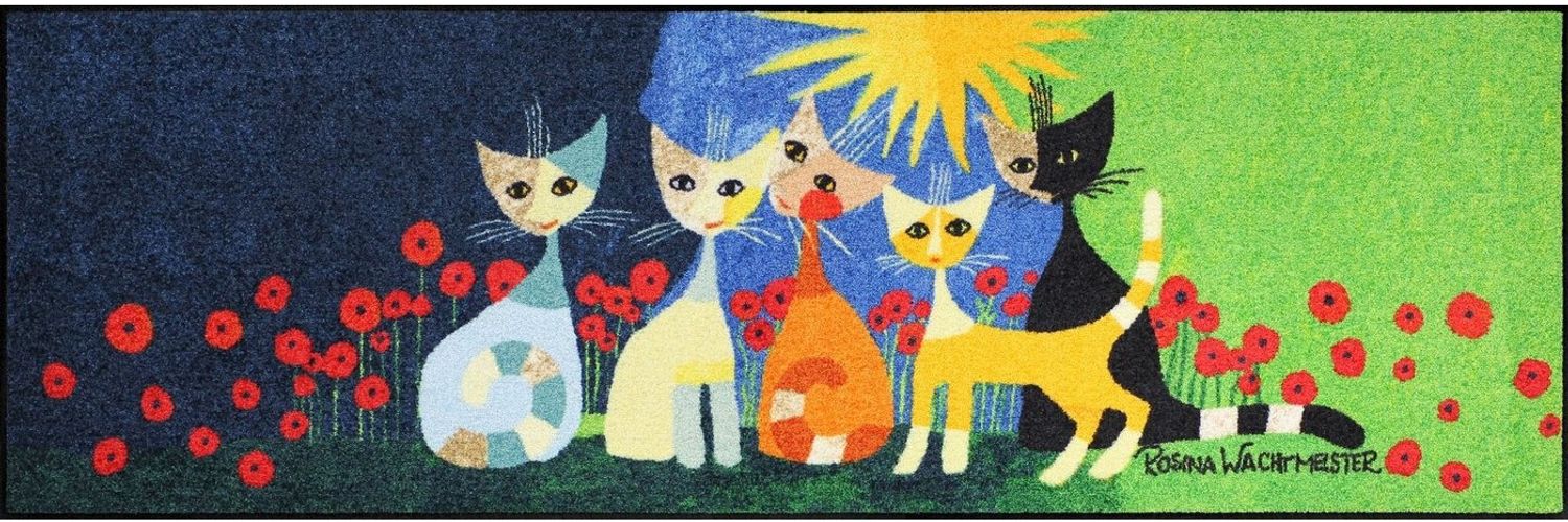 Der Salonloewe Läufer Teppichläufer „Rosina Wachtmeister Una Bella Compagnia“ vereint modernes Design mit Funktionalität. Mit einer Größe von 60 x 180 cm und einer Höhe von 600 mm ist dieser Teppichläufer aus 100 % Polyamid ideal für den Innen- und Außenbereich. Er ist pflegeleicht, strapazierfähig und rutschfest, was ihn zur perfekten Wahl für jeden Raum macht. **Highlights** - Waschbare Fußmatte bis 60 Grad für einfache Pflege - Rutschfest und trittschalldämmend für mehr Sicherheit - Geeignet für Fußbodenheizung und Allergiker - Staub- und schmutzbindend, nicht flusend - Vielseitig einsetzbar als Schmutzfangmatte oder Fußabtreter **Produkteigenschaften** - Größe: 60 x 180 cm - Material: 100 % Polyamid - Höhe: 600 mm - Serie: Rosina Wachtmeister - EmcoFlex Gummi, PVC-frei - Pflegehinweis: Alle zwei bis drei Monate separat waschen und im Trockner oder an der Luft trocknen