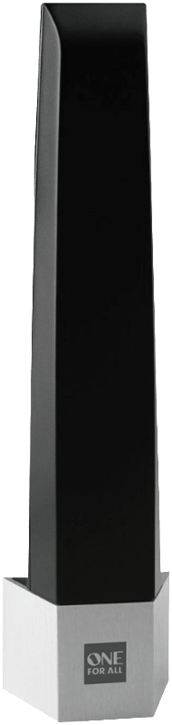 Die One For All SV 9345 besticht durch ein ansprechendes Design und eine hochwertige Verarbeitung aus Kunststoff. Insbesondere der Standfuß im gebürsteten Alu-Look ist ein Blickfang der schlanken Zimmerantenne, die die kompaktesten Abmessungen im Testfeld aufweist. ...