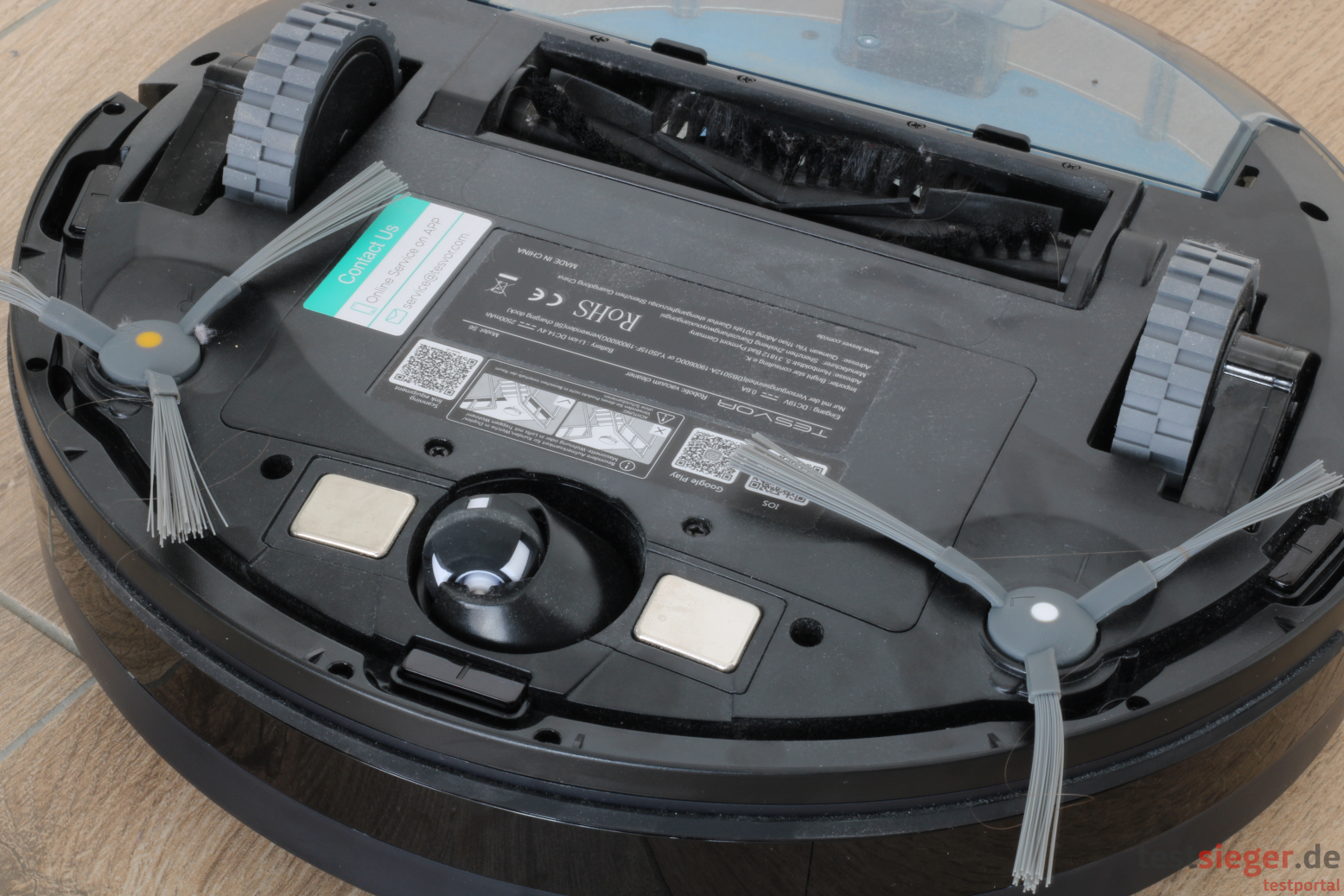 Die Verarbeitungsqualität liegt insgesamt in einem guten Bereich. Zwar entdecken wir die ein oder andere unsaubere Kante und nicht alle Übergänge sind gleichmäßig. Bei einem Gerät in dieser Preisklasse können wir hier jedoch ein Auge zudrücken. Zumal der Tesvor in den wichtigen Punkten überzeugt. Der verwendete Kunststoff ist dick und robust. Selbst unter hoher Belastung gibt er keinen Millimetern nach. Die einzelnen Komponenten sind fest miteinander verbunden. Scharfe Kanten oder spitze, herausstehende Elemente sind nicht vorhanden. Der Nutzer muss sich also keine Sorgen machen, wenn der Roboter Kontakt mit dem Lieblingsmöbelstück aufnimmt.