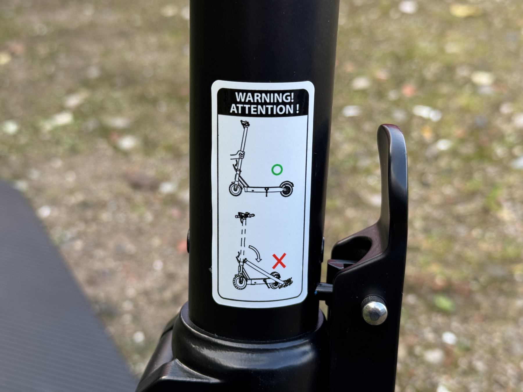 Für den Transport befestigen wir die Lenkstange über einen stabilen Klappmechanismus am hinteren Schutzblech. Dieser Mechanismus funktioniert angenehm geschmeidig und schlägt viele andere Modelle in puncto Benutzerfreundlichkeit. Mit 16 Kilogramm ist der ES Series 3 für uns gerade noch tragbar für den Transport im Auto oder in der Bahn. Allerdings ist zu beachten, dass der Lenker nicht höhenverstellbar ist. Für Personen über zwei Meter könnte dies bei längeren Fahrten zu einer unbequemen Haltung führen, die langfristig Rückenschmerzen verursachen kann.