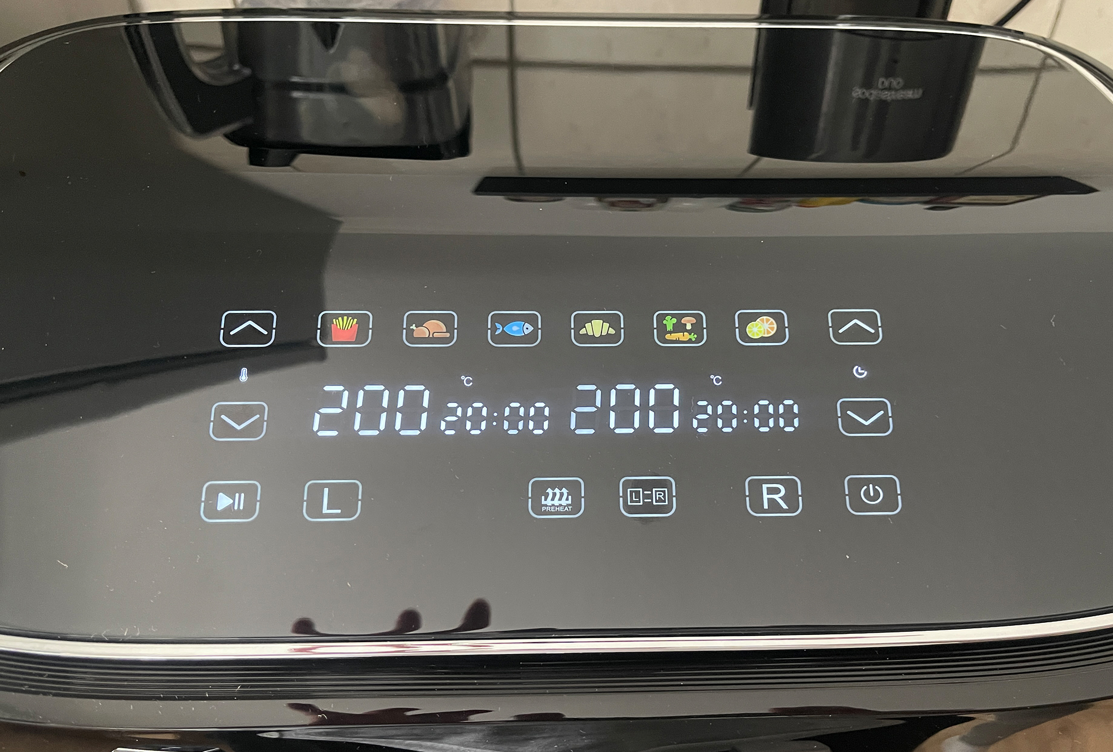 Die Bedienung ist insgesamt sehr einfach. Klare Bilder und Symbole auf der Touch-Oberfläche machen die meisten Funktionen auch ohne Blick in die Anleitung sofort verständlich. Spezielle Funktionen wie die Sync-Funktion, die dafür sorgt, dass beide Speisen gleichzeitig gar werden, erfordern jedoch einen kurzen Blick in die Bedienungsanleitung.