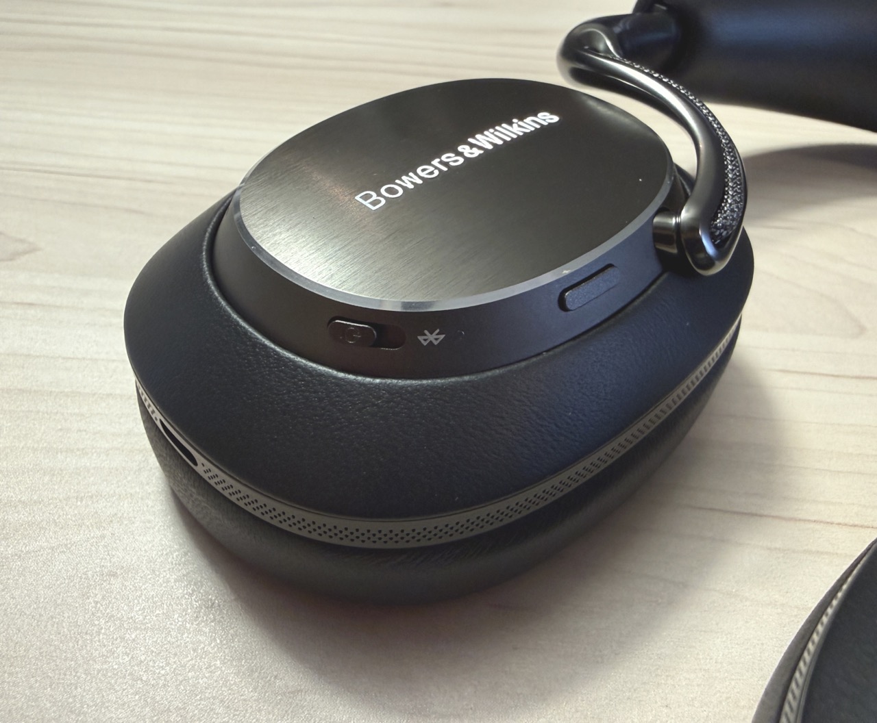 Bedienelemente des Bowers & Wilkins Px8 S2 mit Lautstärketasten und Play/Pause-Button.