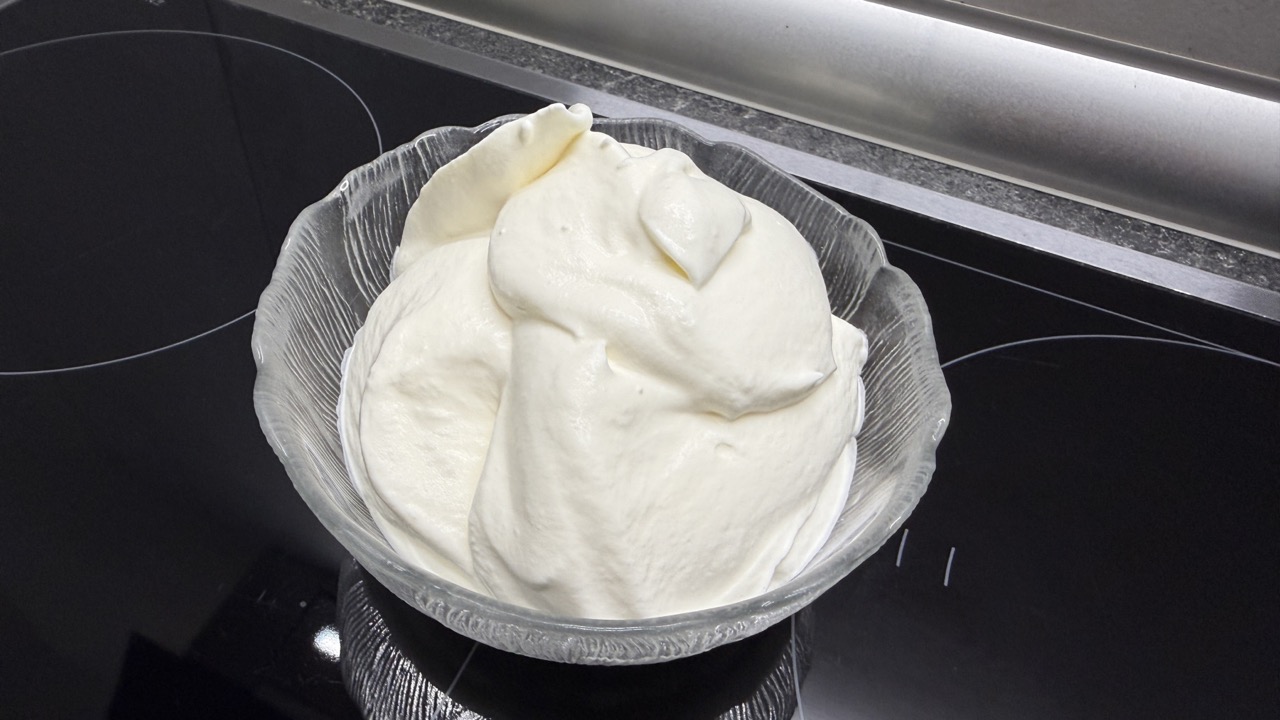 Im dritten Test nutzen wir den Schneebesen und schlagen Sahne auf. Innerhalb weniger Minuten ist die Sahne locker aufgeschlagen, ohne dass der Mixer ins Straucheln kommt. Ebenso probieren wir den Universalzerkleinerer mit 500 Milliliter Fassungsvermögen aus, um Nüsse zu hacken. Die Nüsse werden in Sekundenschnelle fein zerkleinert, und auch hier gibt es keinerlei Probleme oder Beanstandungen.