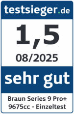 Der Braun Series 9 Pro+ 9675cc überzeugt im Test durch seine Verarbeitung, angenehme Handhabung und eine starke Akkulaufzeit. Die Rasur ist gründlich und hautschonend, lediglich im Bereich der Koteletten und bei sehr präzisen Konturen stößt das Gerät an seine Grenzen. Die umfangreiche Ausstattung, insbesondere das Reiseetui mit Ladefunktion hebt das Gerät nochmal deutlich zum Vorgänger ab. Auch die komfortable Reinigungsstation steigert den Komfort nochmal deutluch. Allerdings sollte man die Folgekosten für Reinigungskartuschen und den hohen Anschaffungspreis im Blick behalten. Wer Wert auf Komfort, Langlebigkeit und starke Akkuleistung legt, findet hier einen zuverlässigen Begleiter, der in den meisten Disziplinen überzeugt – auch wenn er nicht in allen Details perfekt ist.