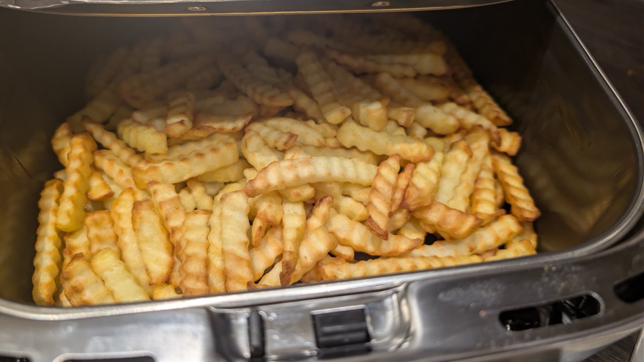 Im Nuggets-Test wählen wir ebenfalls Air Fry mit 200 Grad Celsius und stellen 12 Minuten ein, ohne Verlängerung. Hier liefert die Heißluftfritteuse ein sehr stimmiges Gesamtbild: Die Nuggets bräunen appetitlich, sie garen innen gleichmäßig saftig durch, und die Ergebnisse fallen von Stück zu Stück sehr konsistent aus. Auffällige Ausreißer treten nicht auf, was für eine stabile Luftführung und passende Programmeinstellung spricht.