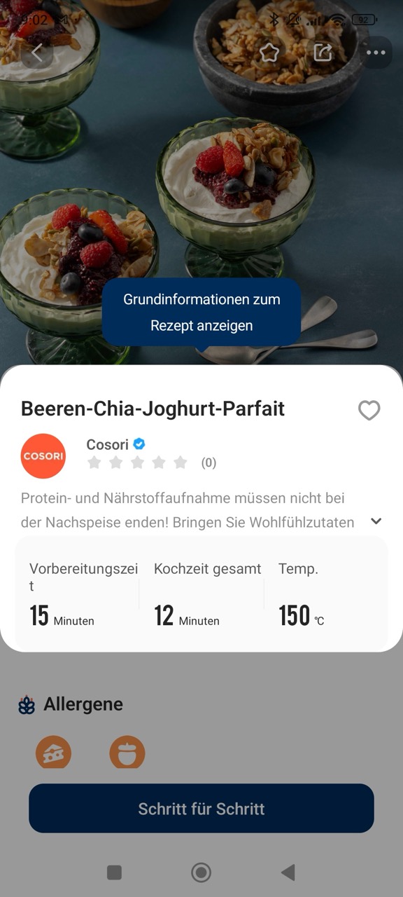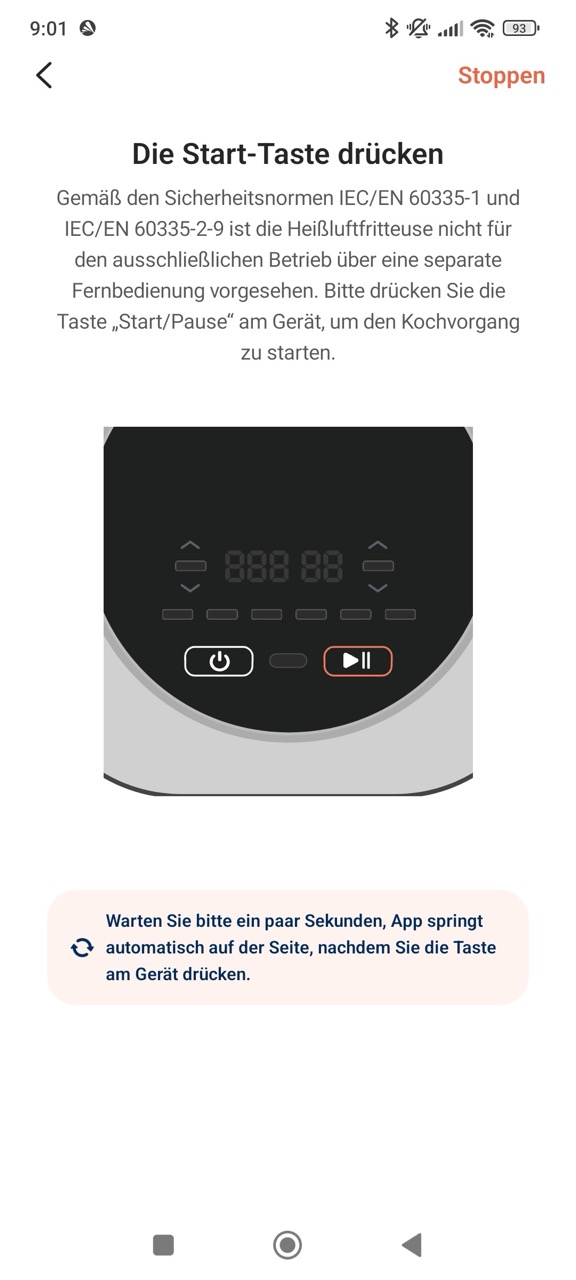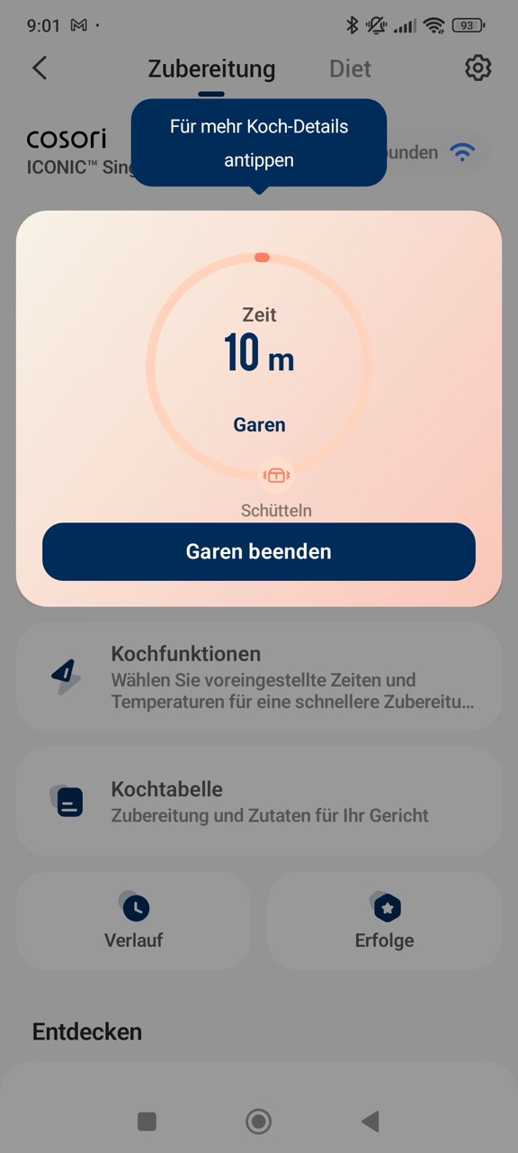Letztere ist kostenlos für Android und iOS erhältlich, und ermöglicht das Steuern der verschiedenen Parameter. Zudem bietet sie zusätzliche Rezepte, inklusive Schritt-für-Schritt-Anleitung. In der Praxis funktioniert das Übertragen von Modus, Zeit und Temperatur an die Heißluftfritteuse gut und spart Eingabeschritte. Trotzdem bleibt ein wichtiger Punkt: Den Start am Gerät müssen wir weiterhin manuell auslösen, eine vollständige Fernsteuerung ist aus rechtlichen Gründen laut COSORI nicht möglich. Unterm Strich liefert die App dennoch einen hohen Mehrwert, vor allem über die Rezeptführung. Die Einrichtung und die Kopplung mit unserem WLAN gelingt schnell, allerdings ist ein Nutzerkonto zwingend erforderlich.