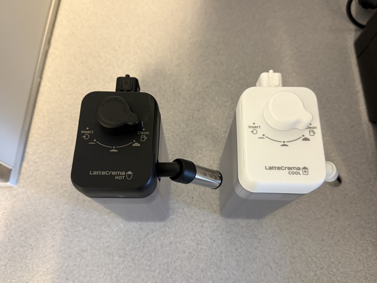 Ein Highlight sind die beiden mitgelieferten Milchkaraffen: eine für heiße, eine für kalte Zubereitungen. Beide fassen etwa 700 Milliliter und dürfen auch in den Kühlschrank.