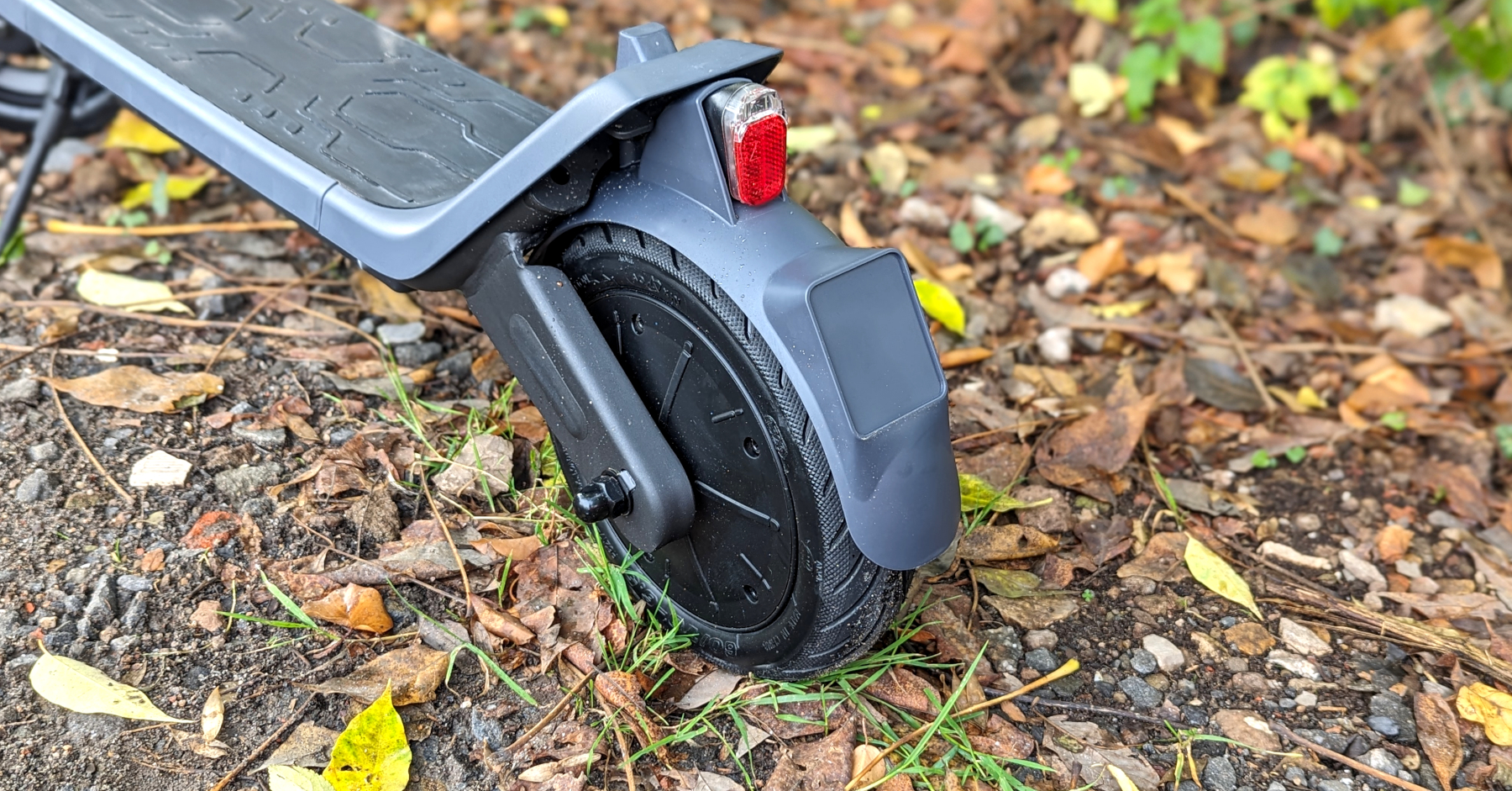 Die Bremsleistung ist im Vergleich zu anderen Modellen in der Mittelklasse in Ordnung. Die verbaute Motor- und Trommelbremse arbeiten zuverlässig und benötigen für eine Vollbremsung bei Höchstgeschwindigkeit etwa 2,10 Meter. Zwar kein Bestwert, angesichts der Leistungsfähigkeit der verbauten Bremsen in Ordnung. Positiv ist, dass der E-Scooter trotz unterschiedlich starker Bremsen gleichmäßig bremst. So können wir auch bei einer Vollbremsung stabil und sicher auf dem Scooter stehen. Dies ist im Vergleich zu anderen Scootern nicht selbstverständlich und sehr positiv.