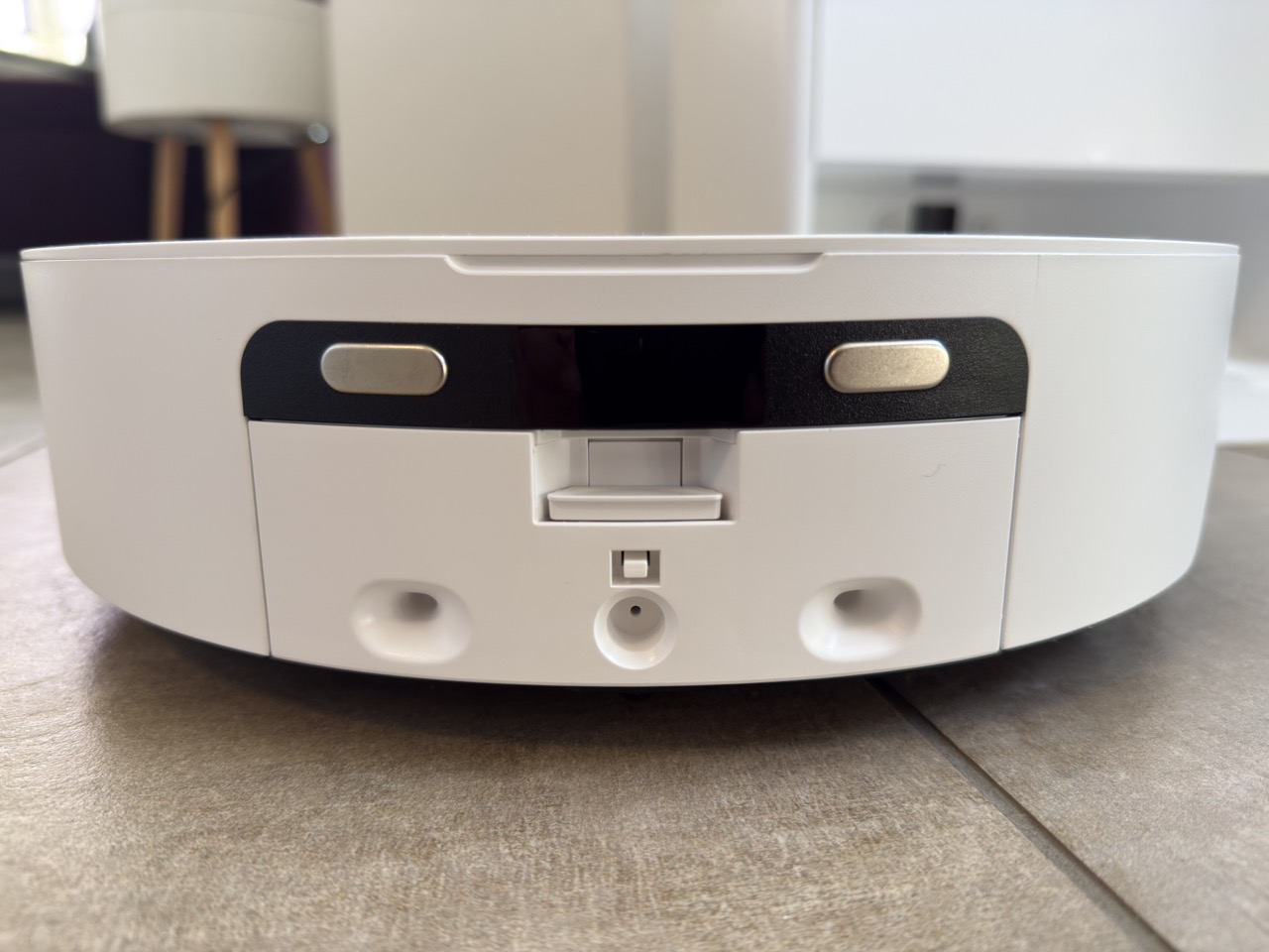 Daneben können wir den Roboter über physische Tasten am Gehäuse (Start/Pause, Zurück zur Basis) steuern. Eine Fernbedienung oder ein Display an der Station fehlen, doch diese Elemente vermissen wir im Alltag nicht.