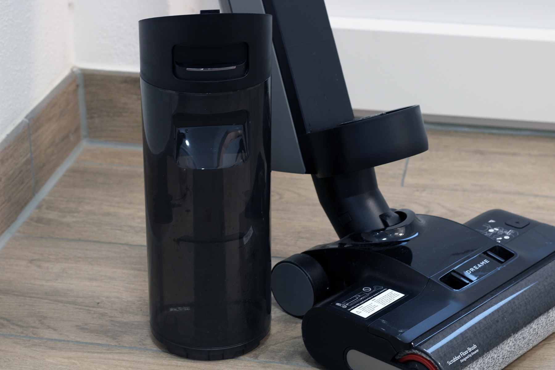 Die Tanks des Geräts sind großzügig bemessen: Der Frischwassertank fasst 900 Milliliter, der Schmutzwassertank 700 Milliliter. Beide lassen sich unkompliziert befüllen und leeren. Eine kleine Herausforderung stellt jedoch die Entfernung von Haaren aus dem Schmutzwassertank dar, die mithilfe der beiliegenden Reinigungsbürste herausgeholt werden müssen. Sehr praktisch ist der Selbstreinigungsmodus: Nach dem Wischen reinigt sich die Bürste selbstständig mit 60 Grad heißem Wasser und wird anschließend mit warmer Luft getrocknet. Diese Funktion sorgt dafür, dass das Gerät immer einsatzbereit und hygienisch sauber bleibt.