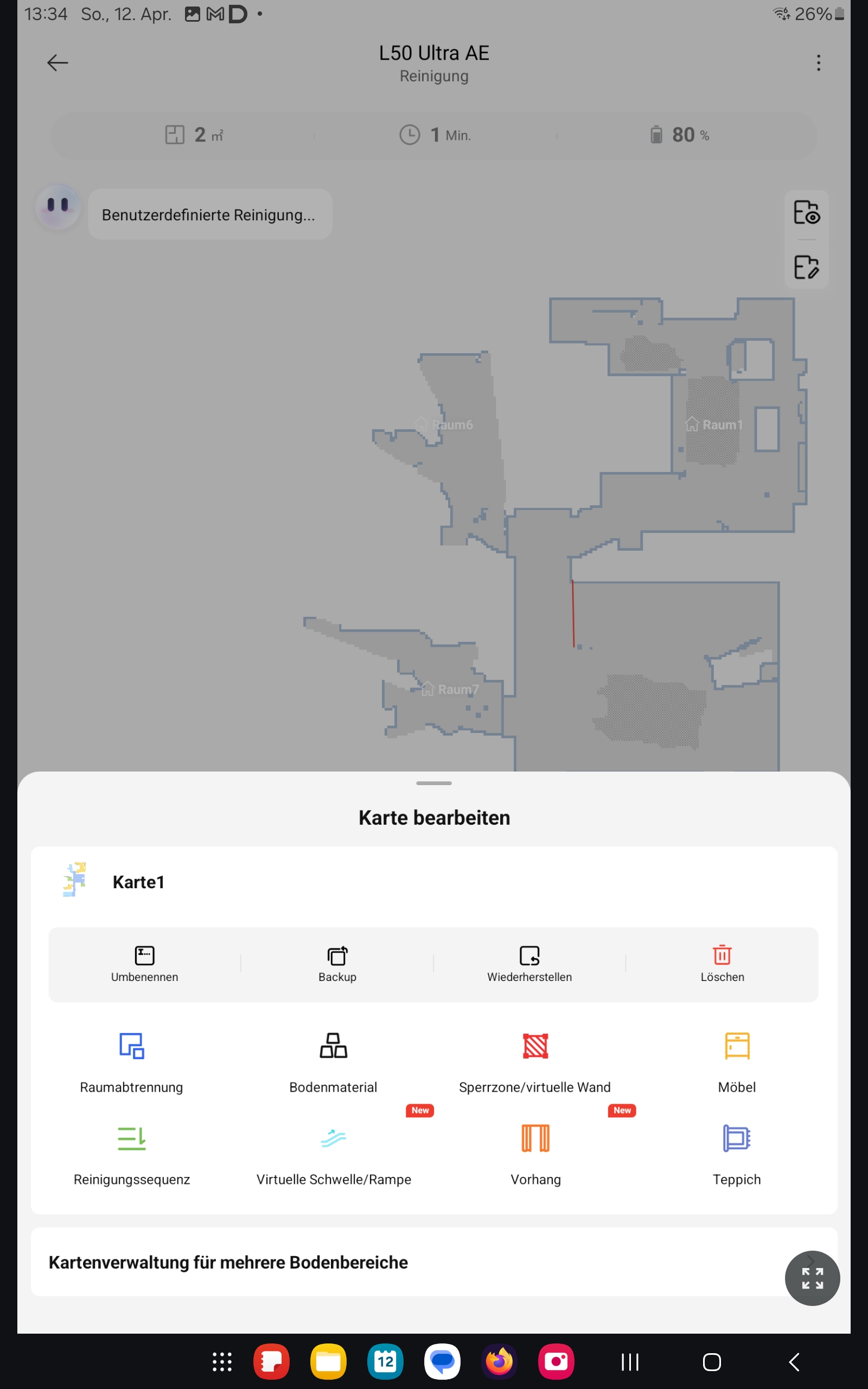 Die Navigation gehört zu den klaren Stärken: Der Roboter arbeitet schnell und ohne Unterbrechungen, fährt sinnvolle Bahnen und findet jederzeit zuverlässig zur Station zurück. Im gesamten Testzeitraum bleibt er an keiner Stelle stecken.