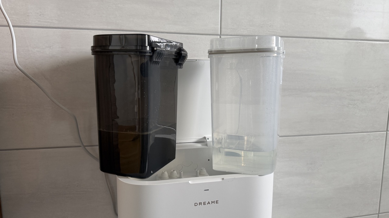 Die All-in-One-Station bietet automatische Staubbeutelentleerung, Wischpadreinigung mit 100 Grad heißem Wasser, Heißlufttrocknung und automatische Reinigungsmitteldosierung. Der Frischwassertank fasst 4,5 Liter, der Staubbeutel in der Station 3,2 Liter. Die Mopps kommen nach der Stationsreinigung sauber heraus. Einen Festwasseranschluss unterstützt die Station nicht, die Tanks befüllen Nutzerinnen und Nutzer manuell.