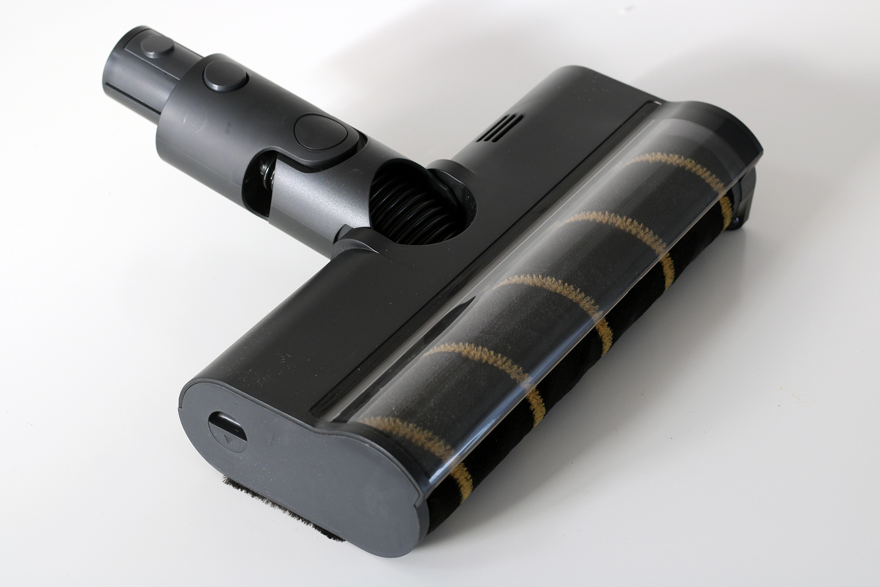 Daneben befindet sich noch eine zweite Hauptdüse in der Verpackung. Diese ist ebenfalls motorisiert und kommt mit LED-Licht, ist mit ihrer weichen Walze aber ausschließlich für Hartböden geeignet. Zudem soll sie noch besser an Kanten saugen.
