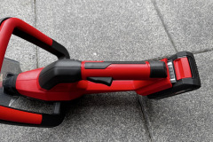 Ein 2-Amperestunden-Akku ermöglicht eine Arbeitszeit von rund 30 Minuten, wobei danach noch etwa 30 Prozent Restkapazität verbleiben. Mit einem größeren 4-Ah-Akku lässt sich die Laufzeit auf etwa eine Stunde steigern. Die Lautstärke liegt bei etwa 80 Dezibel und ist damit angenehm leise im Vergleich zu Benzinmodellen.